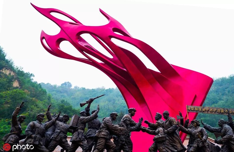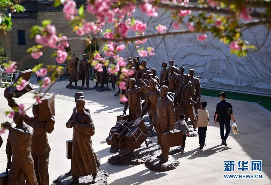 2019年4月21日,游人在延安市南门广场参观。新华社记者 邵瑞 摄