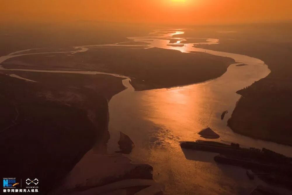 清晨,河南省巩义伊洛河与黄河交汇处日出。新华网发 郭红欣 摄