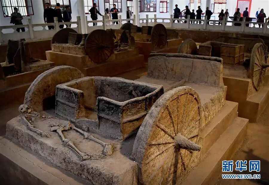 游客在河南安阳殷墟宫殿宗庙遗址内的车马坑参观。新华社记者 李安 摄
