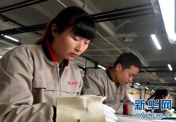 工作人员在郑州航空港区智能终端产业园组装手机(2017年12月7日摄)。新华社发(李嘉南 摄)