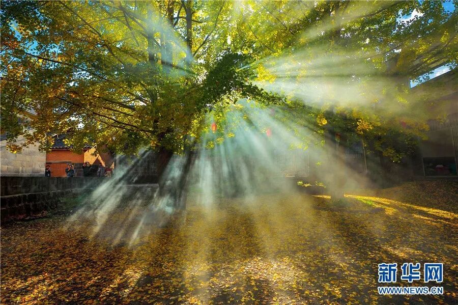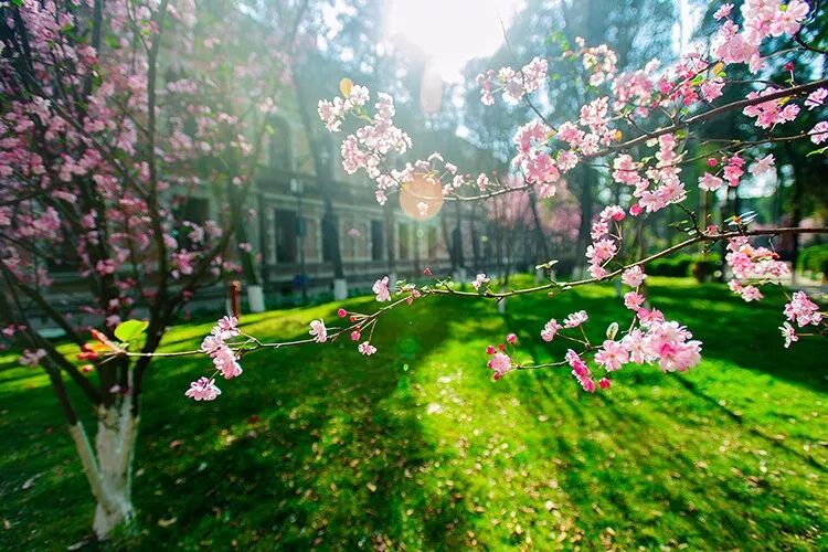 云南大学会泽院前盛放的海棠。新华网发(李哲 摄)