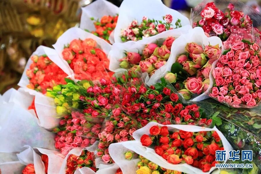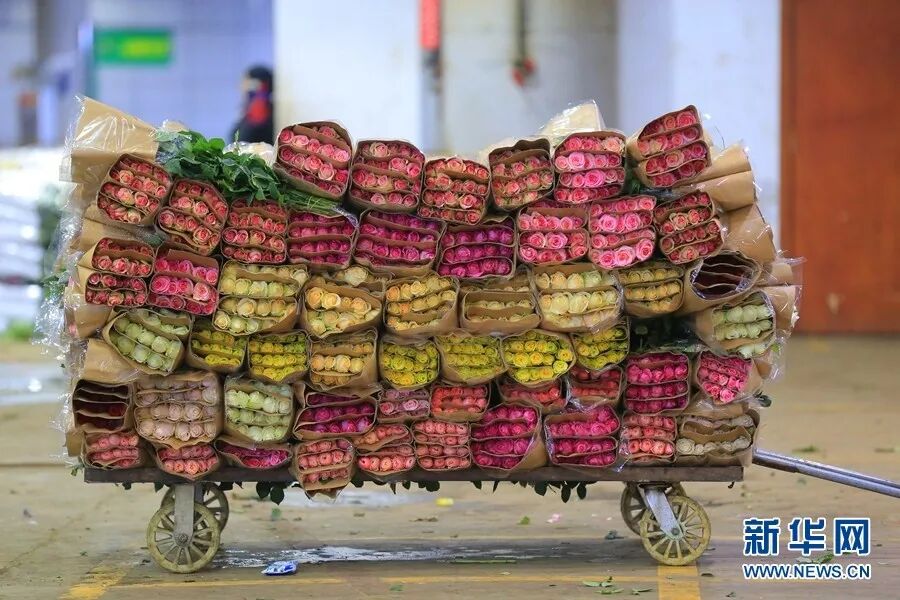 斗南花卉市场上的鲜花,“配齐”芳香与浪漫。新华网发(赵普凡 摄)