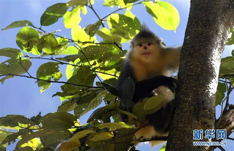 香格里拉滇金丝猴国家公园里的滇金丝猴。新华社记者 蔺以光 摄