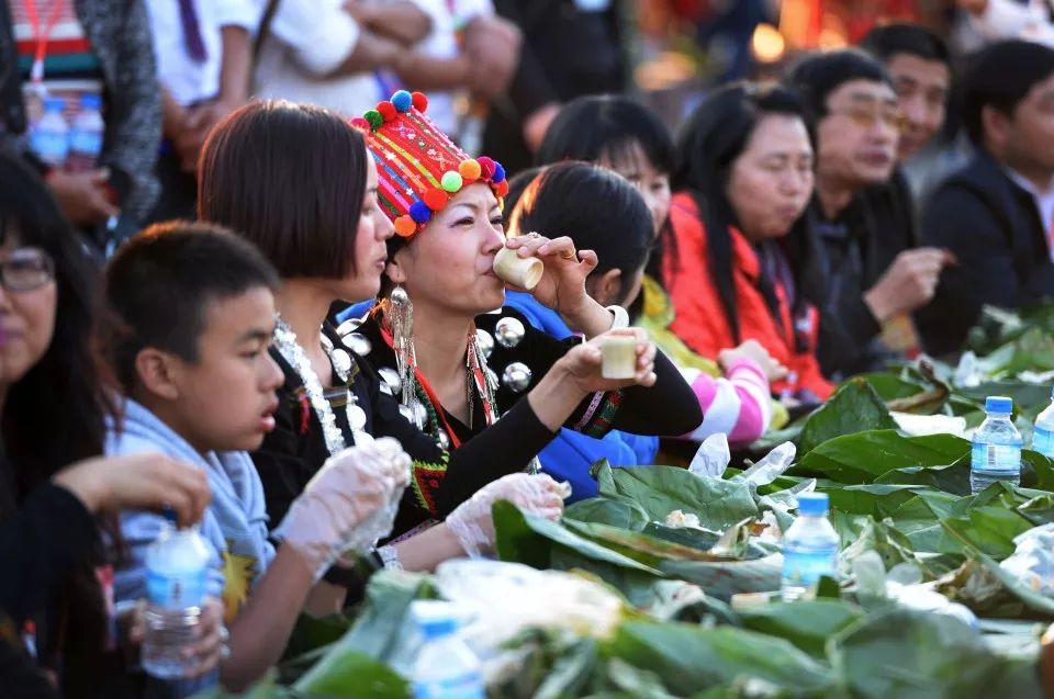 云南少数民族的长街宴。新华网发(陈海宁 摄)