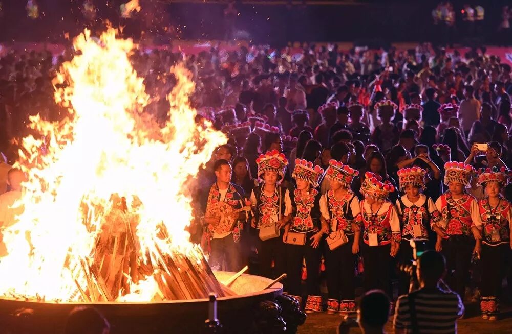 楚雄当地居民和游客欢度火把节。新华社记者 杨宗友 摄