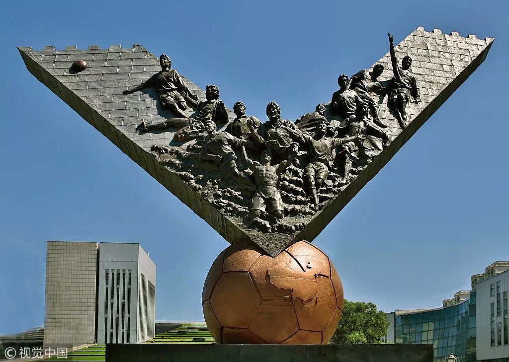 为纪念2001年国足世界杯出线,按真人比例制作的32个国足明星雕像。