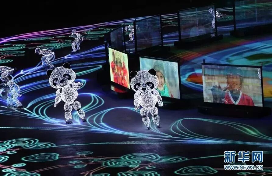 2018年平昌冬奥会闭幕式“北京8分钟”表演中,由沈阳新松机器人自动化股份有限公司研发的智能移动机器人与轮滑演员进行表演(2月25日摄)。新华社记者 李钢 摄