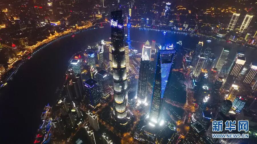上海陆家嘴的夜景鸟瞰。新华社记者 丁汀 摄