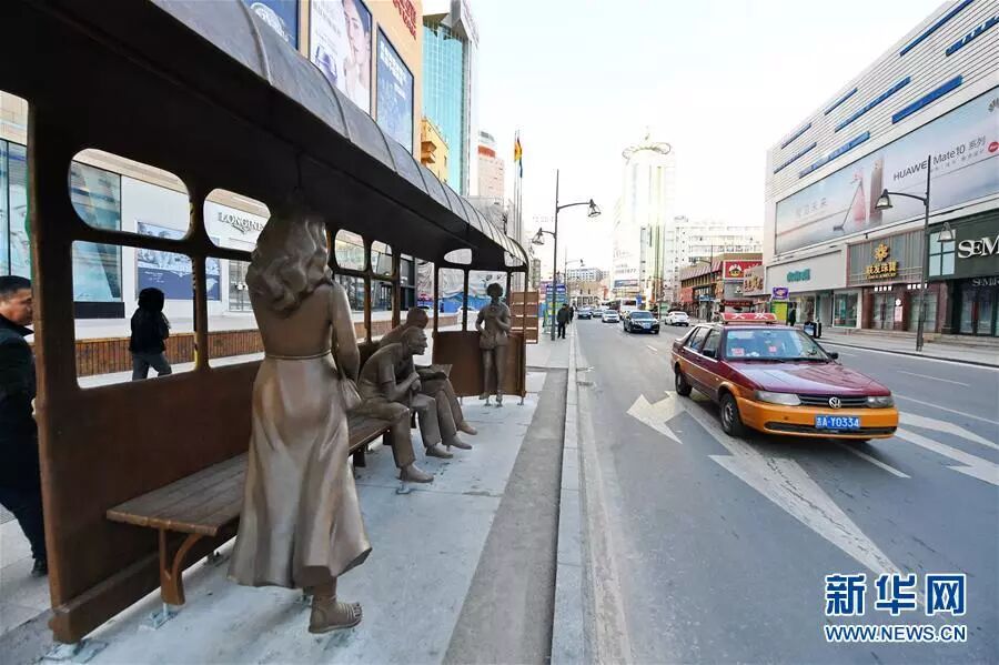 长春市“城市记忆”候车亭雕塑。新华社记者 张楠 摄