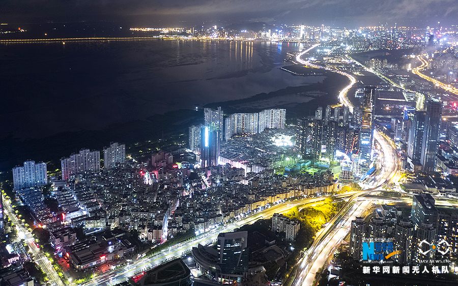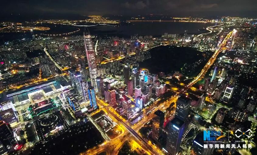 无人机航拍深圳福田中心区的夜景。新华网发(梁必成 摄)