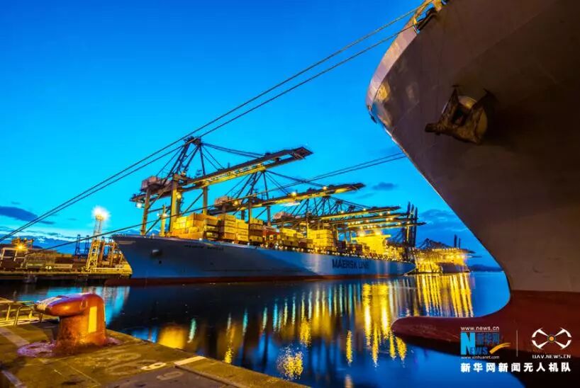 夜晚灯火通明时,深圳盐田港依旧在繁忙地运转中。新华网记者 郑磊 摄