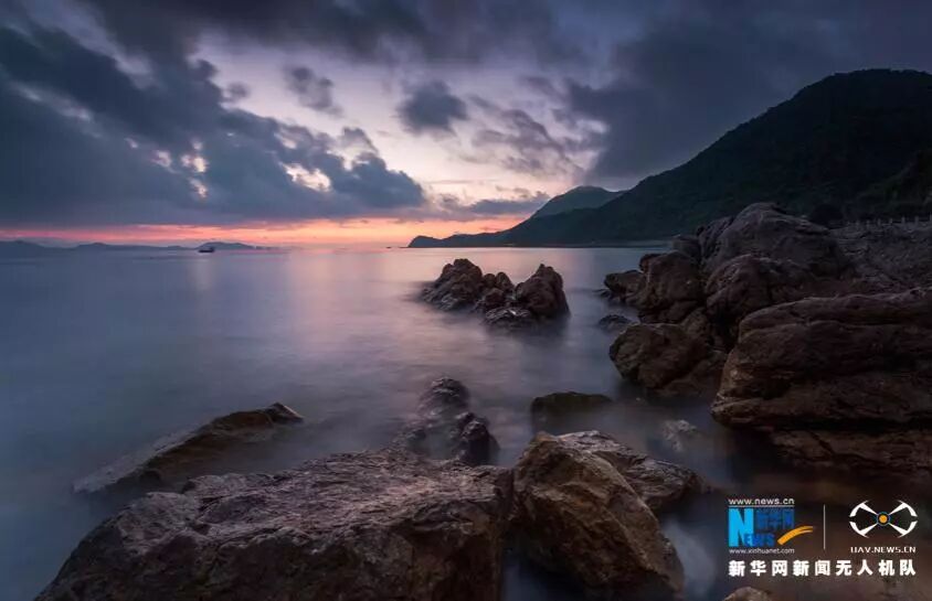 早晨五点多,大鹏半岛南澳镇晨曦中的海边礁石。新华网发 (林海帆 摄)