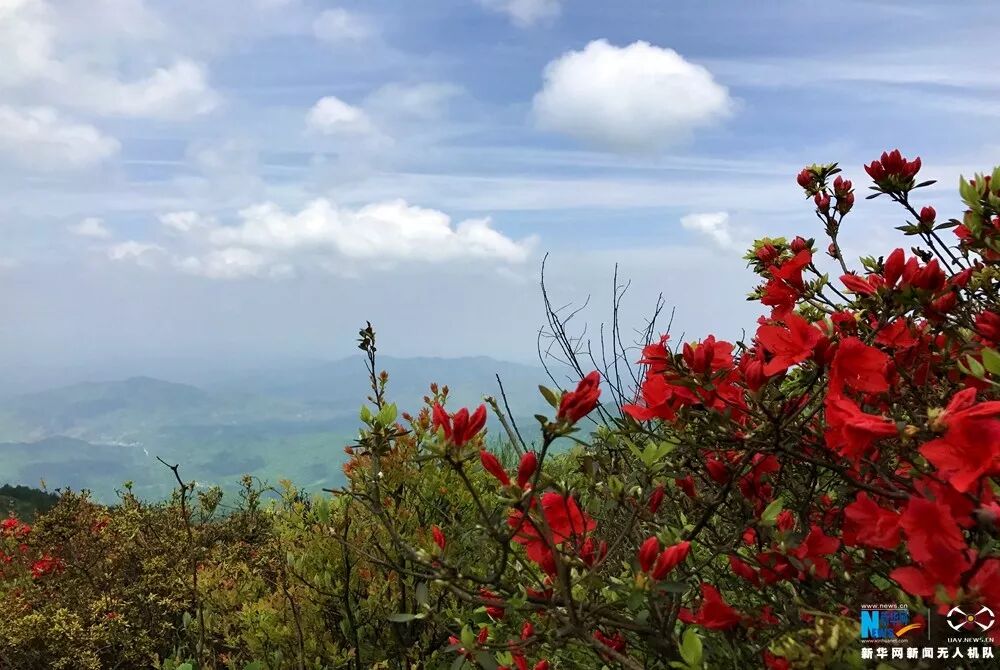 江西石城杜鹃、草甸、蓝天、白云融为一体,宛如走进一幅如诗的画卷。新华网发 杨益民 摄