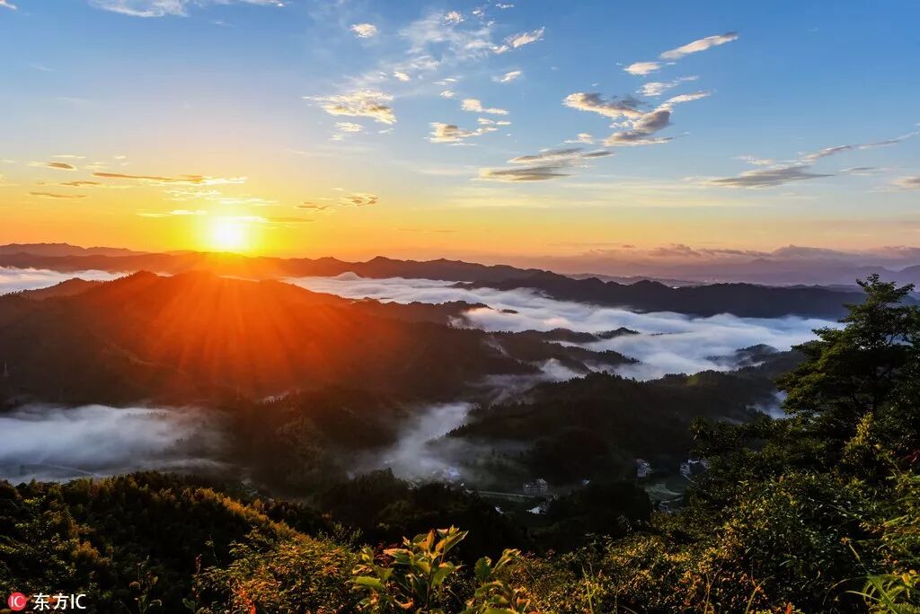 江西省遂川县佛祖仙岭远眺,日出东方,美不胜收。