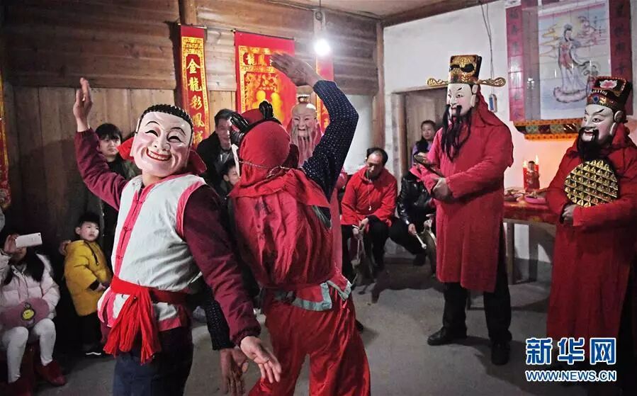 傩师在江西省南丰县白舍镇上甘村表演傩舞。新华社记者 万象 摄