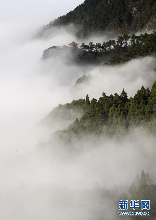雨后的江西南武当山被雨雾笼罩,宛如人间仙境。新华网 杨益民 摄