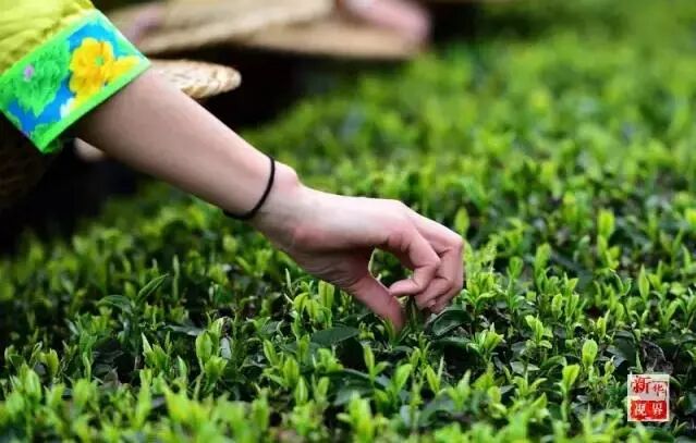 福州市晋安区宦溪镇,采茶姑娘们采摘茶树最鲜嫩的芽尖。新华社记者魏培全摄