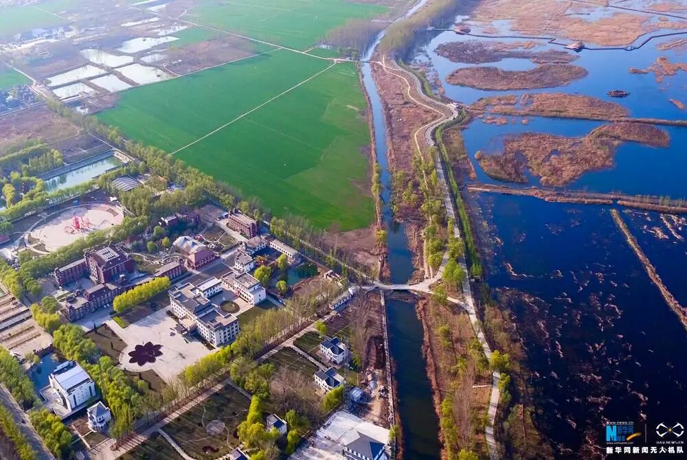 俯瞰河北省安新县境内的白洋淀。新华社记者 杨世尧 摄