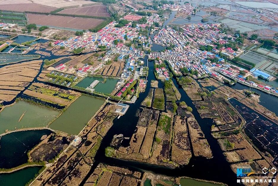 航拍白洋淀淀里村庄。新华网 张润贞 摄