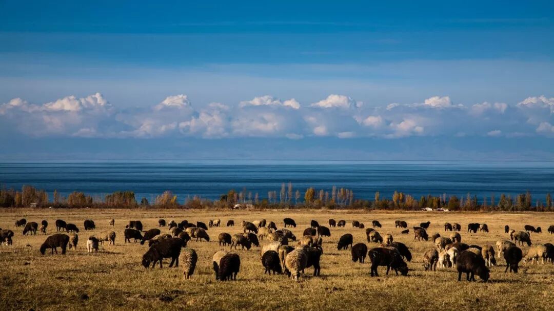吉尔吉斯斯坦伊塞克湖沿岸的秋色。新华社记者 李刚 摄