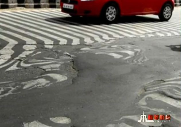 “毒辣”的太阳把马路都烤化了