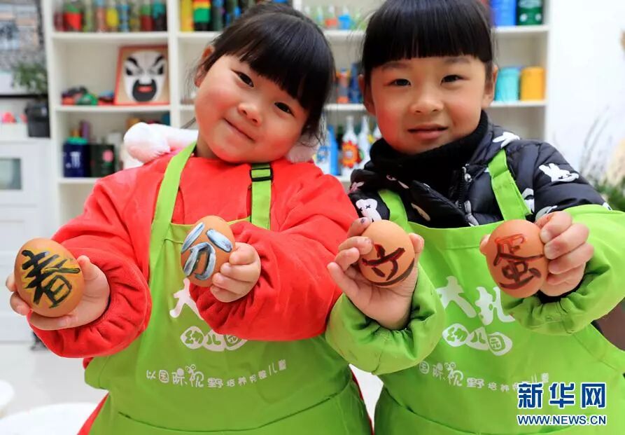 安徽省全椒县庄曹大地幼儿园的小朋友在玩“立蛋”游戏。新华网发 沈果 摄
