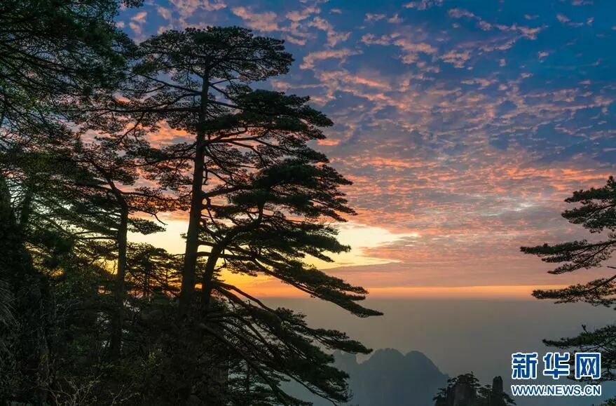 黄山日出和朝霞景观。新华网发(叶四清 摄)