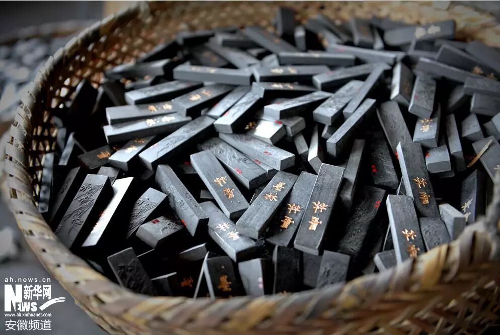 修剪锉边后的徽墨。新华网安徽频道特约摄影师 马贤峰摄