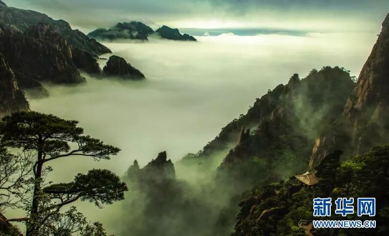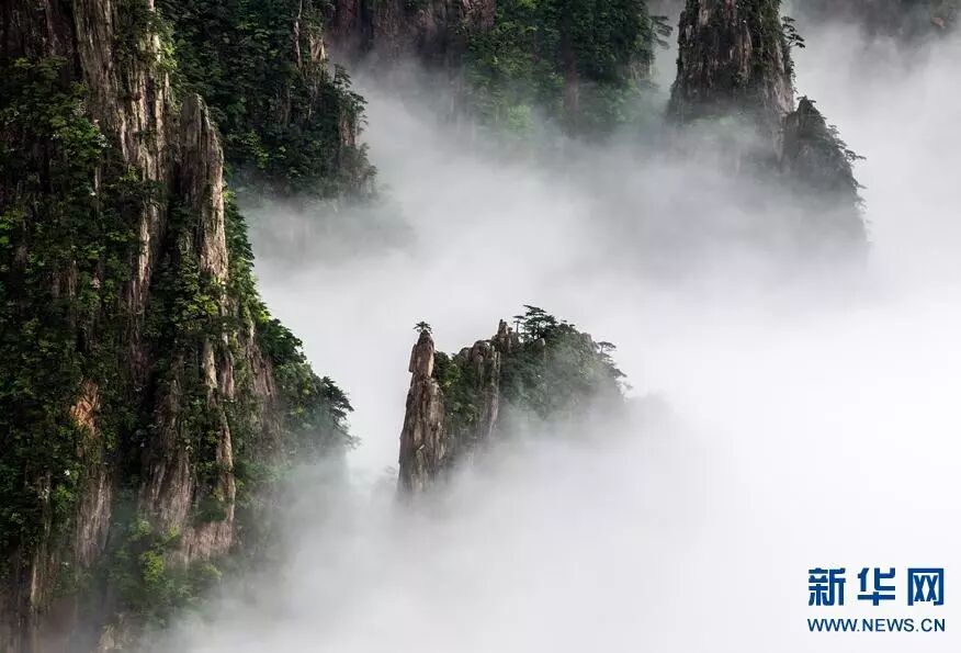 安徽黄山风景区雨后初霁,出现云海奇观,如诗如画,似梦似幻,恍若仙境。新华网发(水从泽 摄)