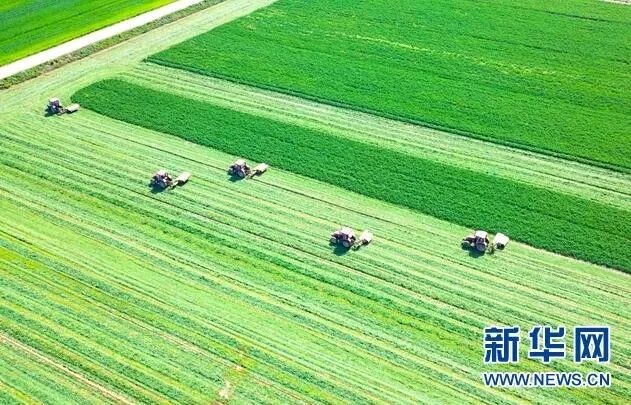 安徽省五河县10万亩紫花苜蓿开镰收割。新华网发(李向前 摄)