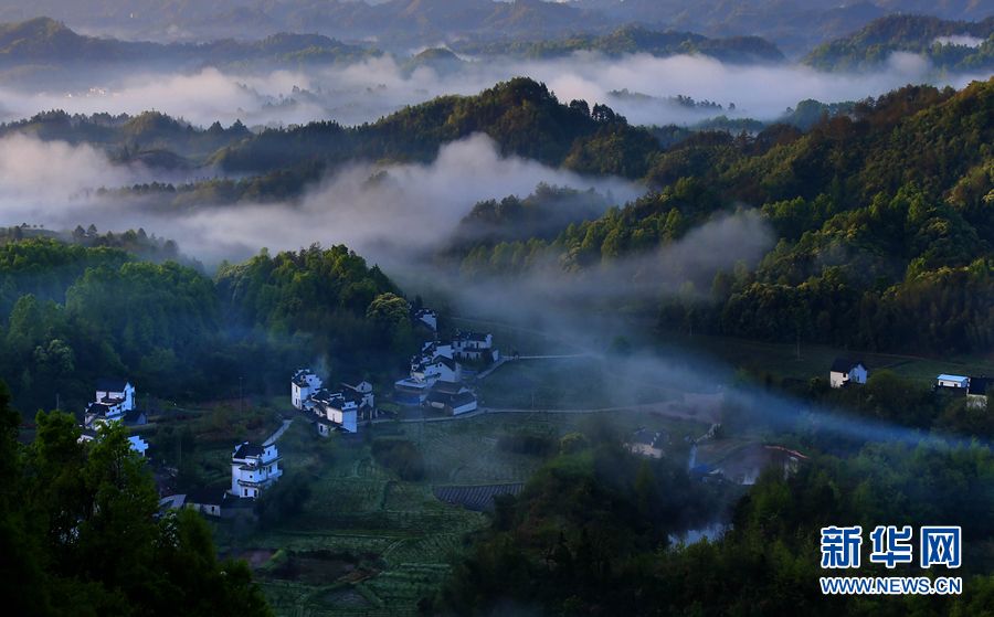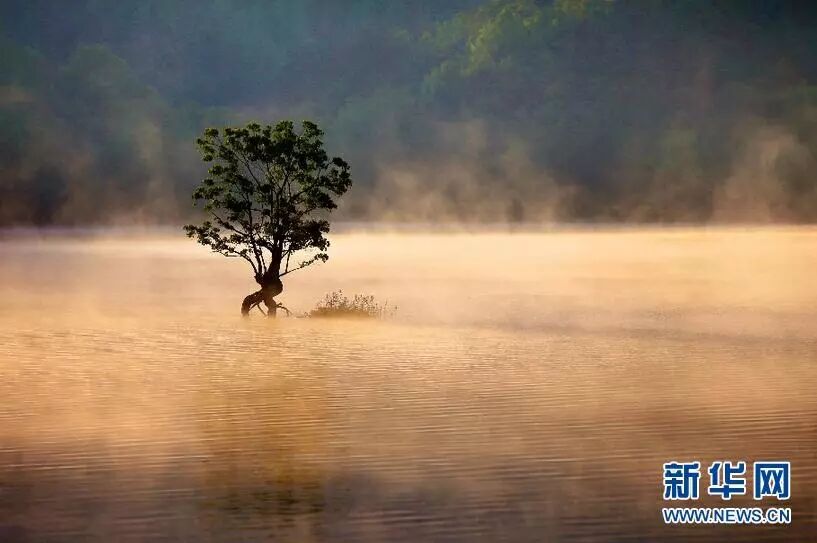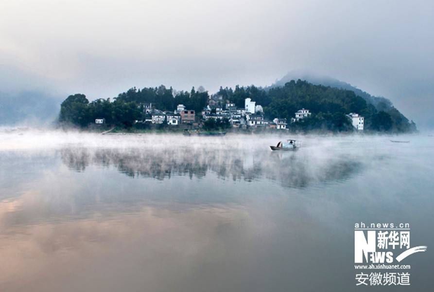 位于皖南的黄山奇墅湖雾霭缥缈。新华网发(施广德 摄)