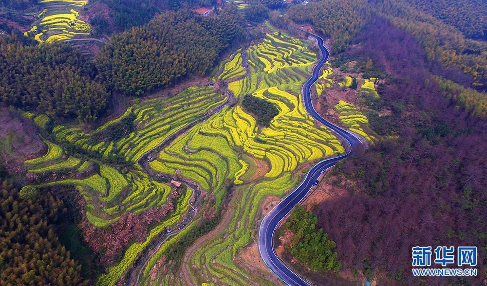 安徽省宣城市绩溪龙川景区油菜花盛开,遍地金黄。新华网发 (李晓红 摄)