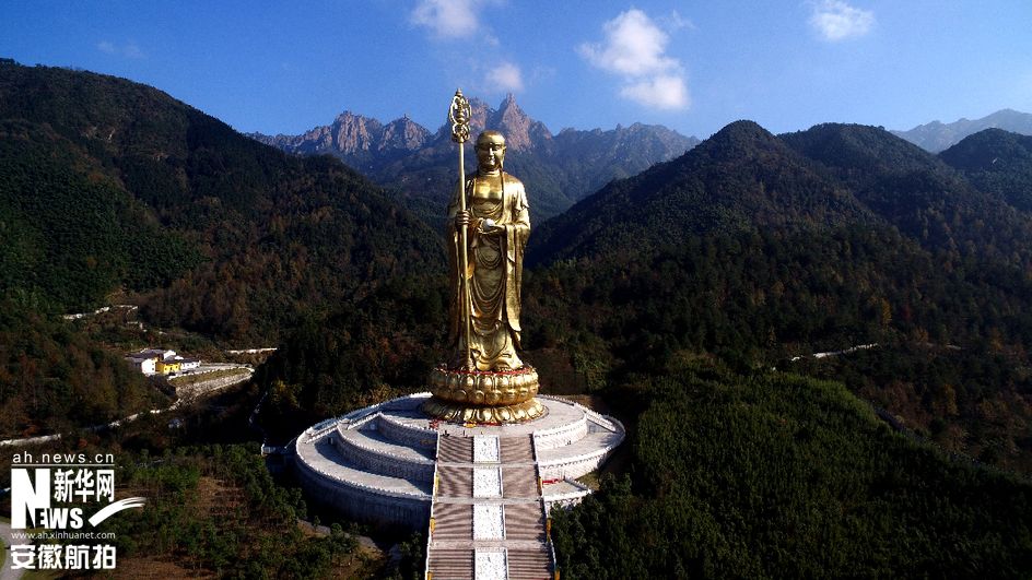 九华山大愿文化园99米高地藏菩萨像。新华网张峭春 陈扬 摄