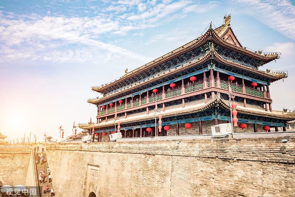 高耸的城墙、大红的灯笼