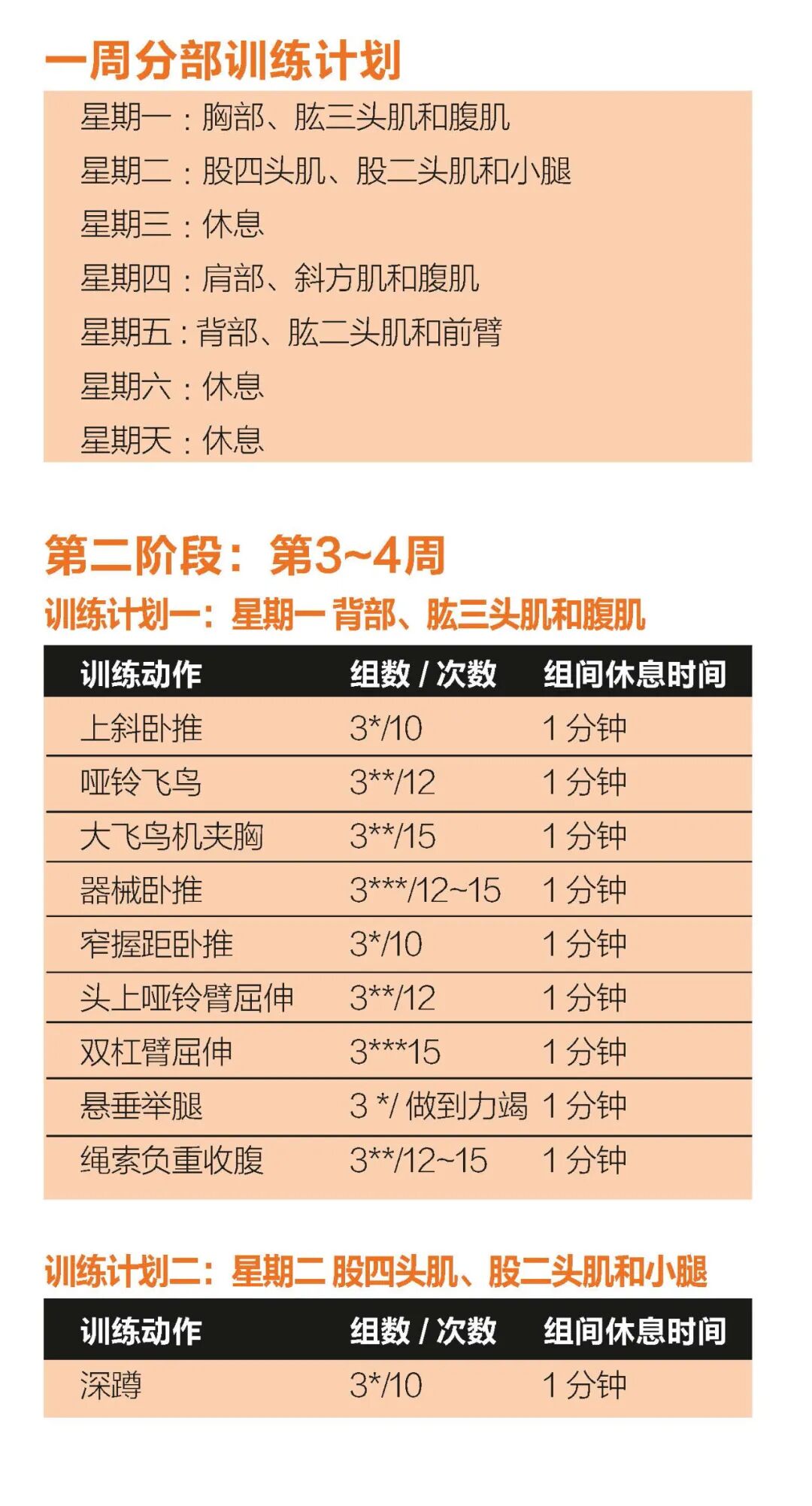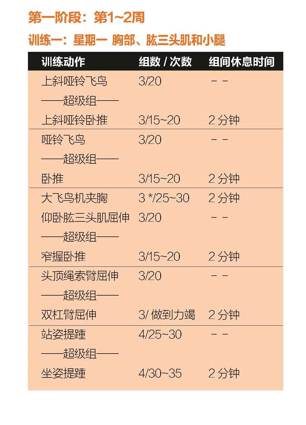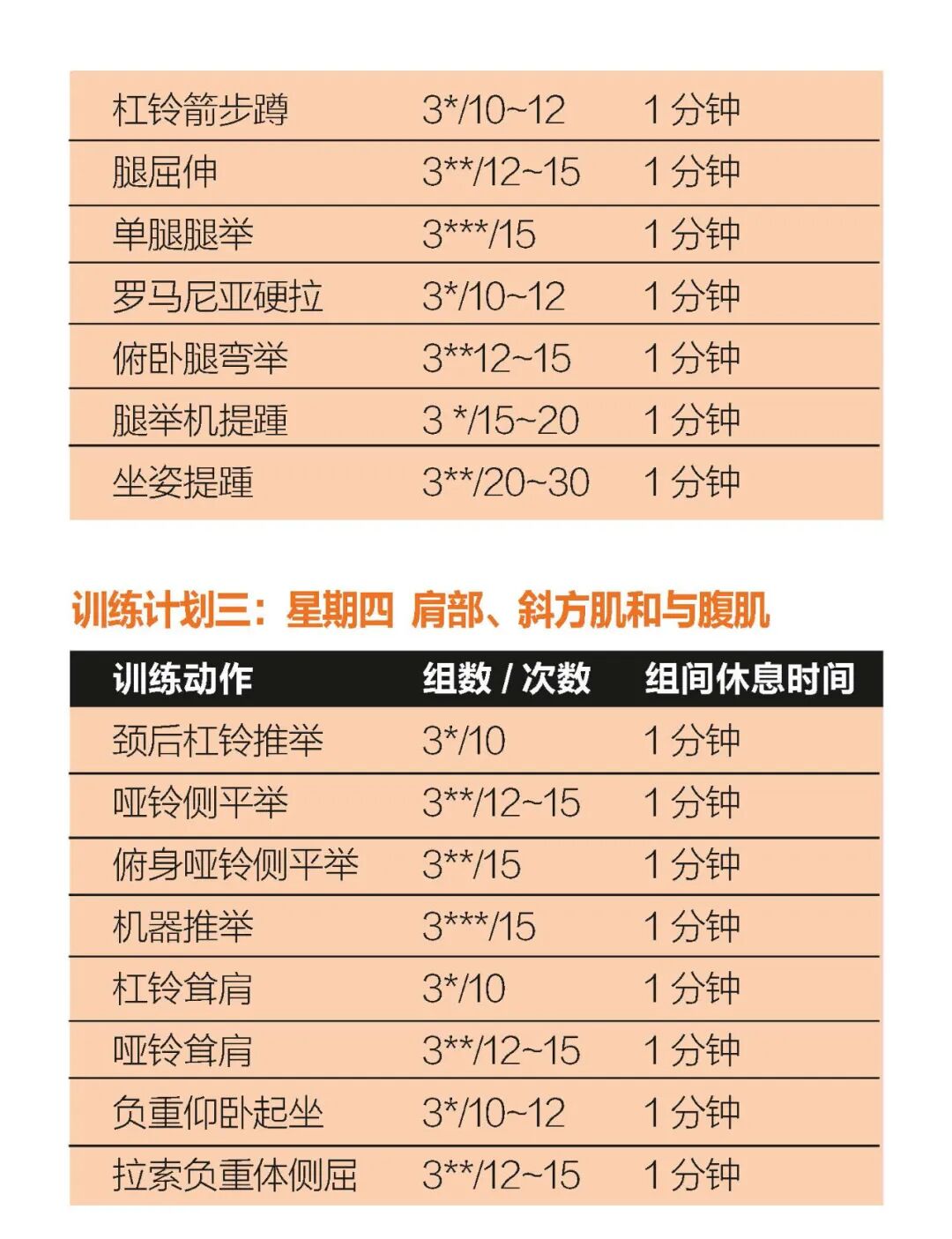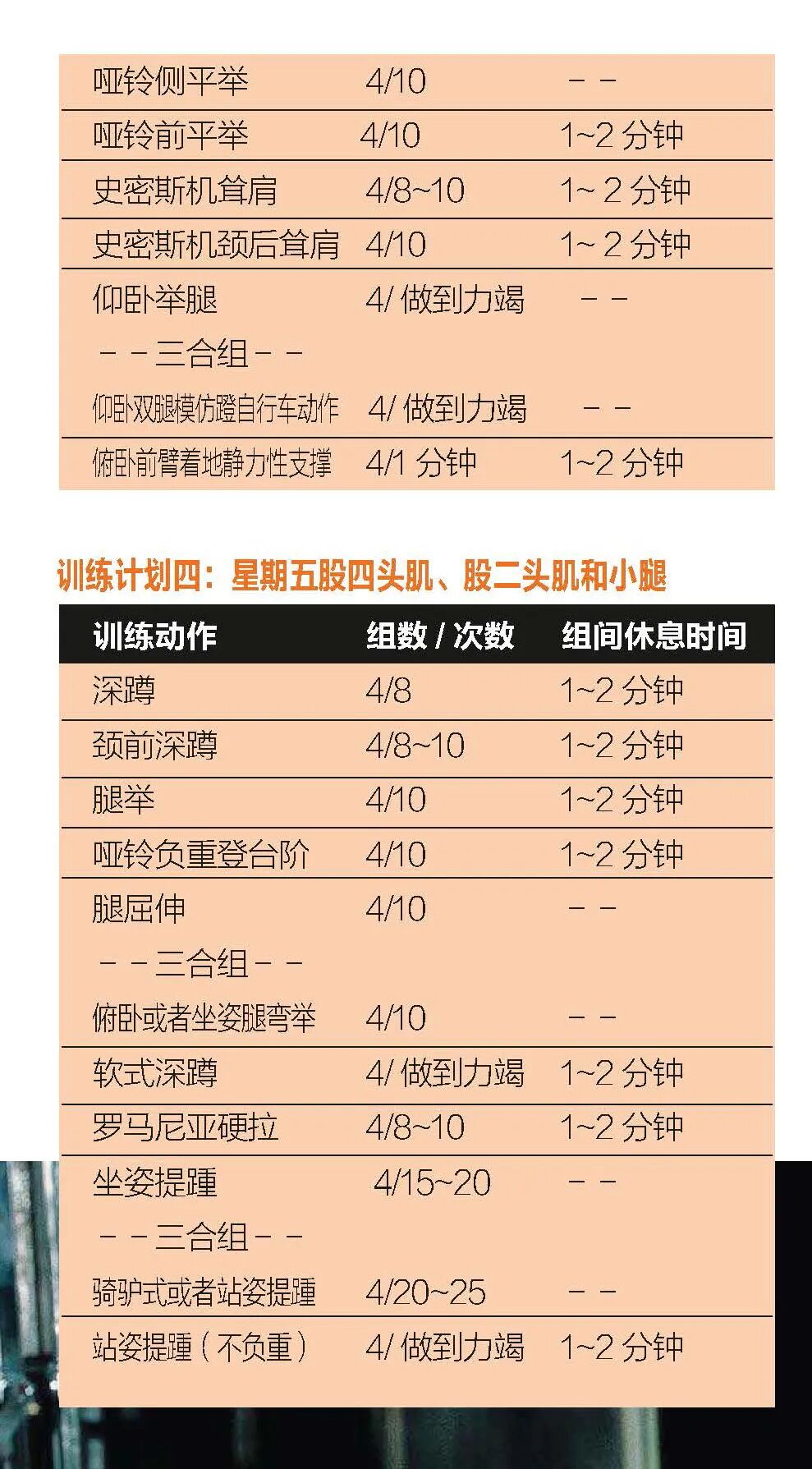 *三合组训练法则:把针对同一个部位的3个训练动作联合在一起做,中间不休息。