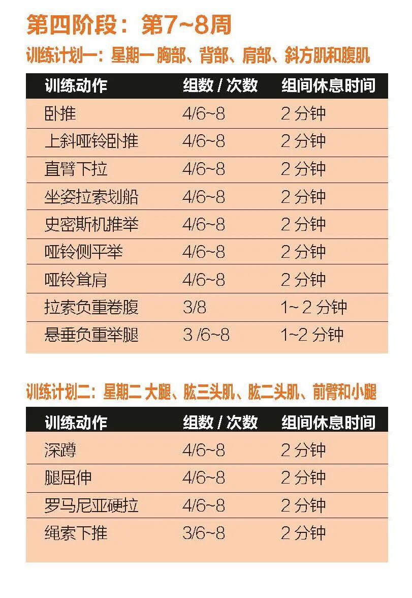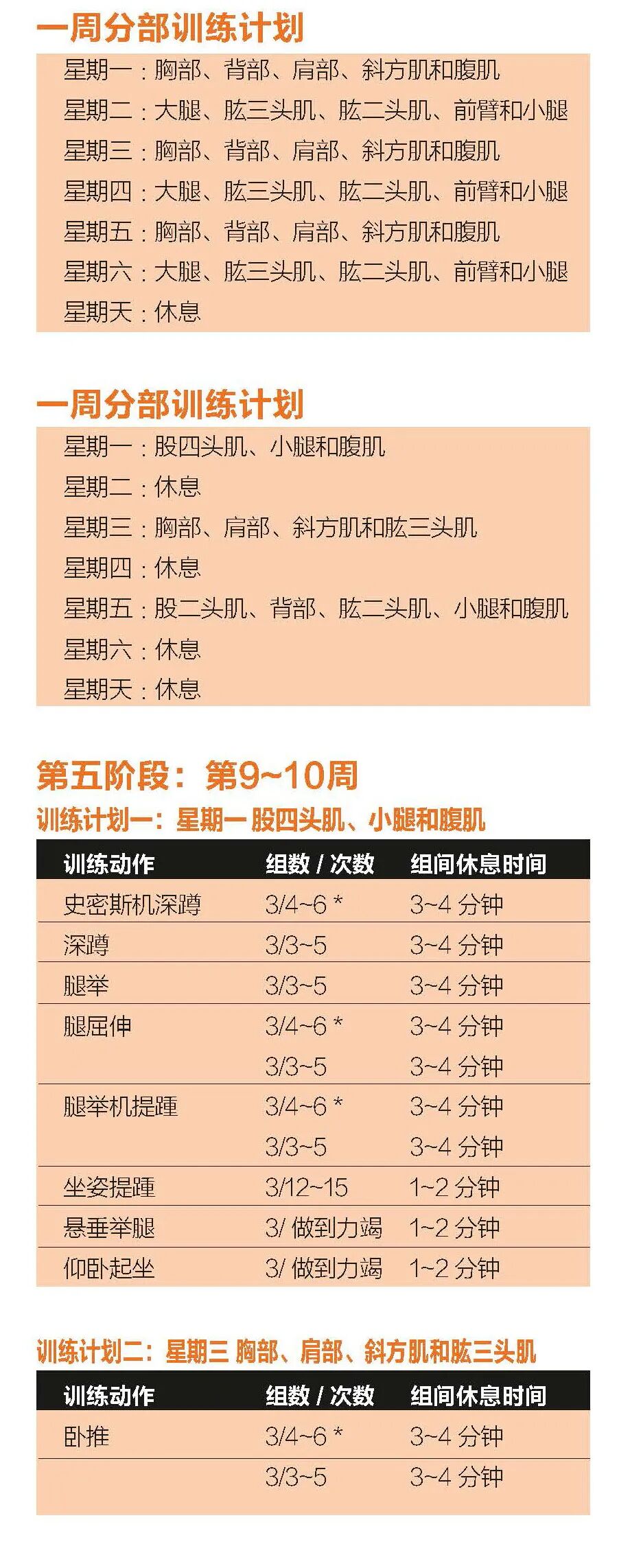 虽然我们通常建议你全年坚持进行有氧训练,但是,在采用这个训练计划的10周期间,你将不进行任何有氧训练,因为那样不利于最大限度地肌肉增长。你应该把能量保留下来,用于促进肌肉增长。