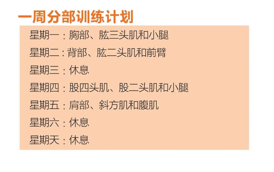 *预先疲劳训练法则:练一个部位时(比如胸部),先做孤立训练动作(如哑铃飞鸟),再做复合训练动作(如卧推)。