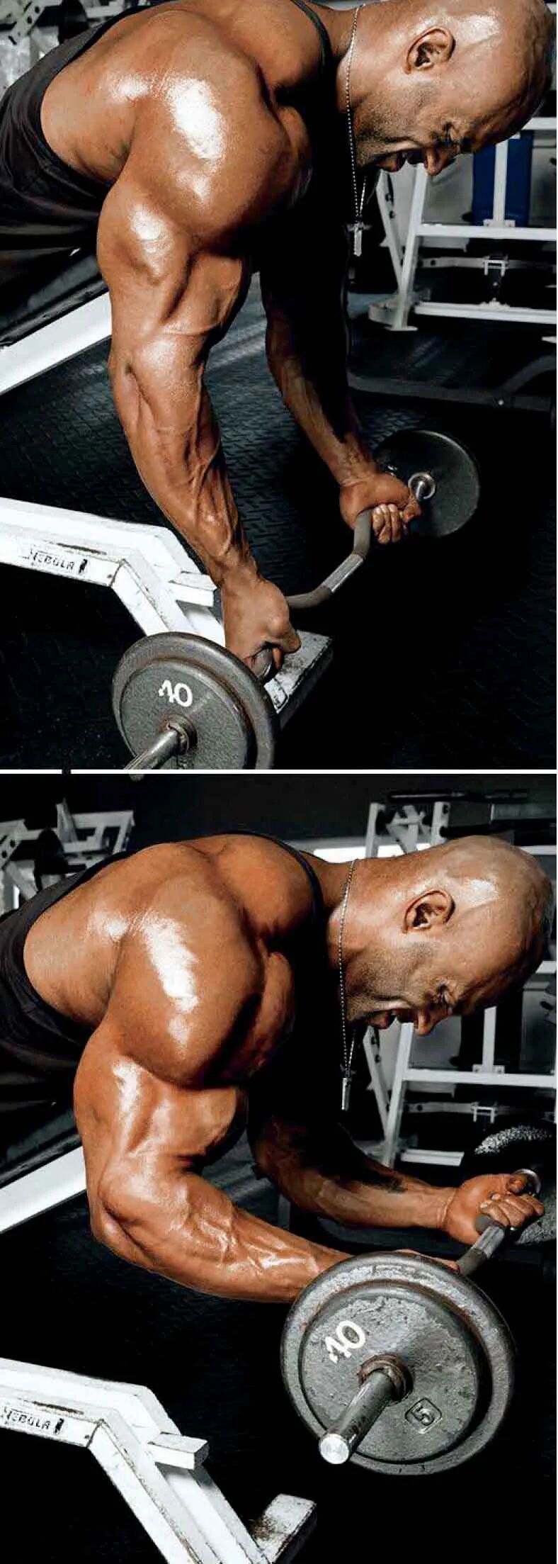 动作要点:你可以通过在动作过程中始终把腕关节往后收来进一步提高训练强度,因为这样几乎可以避免前臂肌群参与用力。