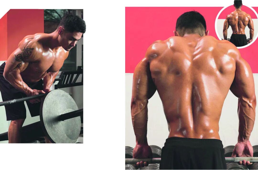 做这个动作时,波特凡喜欢把杠铃杆放在力量架上做,也就是把力量架的支撑杆升高到一定的位置,然后把杠铃杆放在支撑杆上做。为了重点刺激下背部肌群,波特凡会把杠铃杆上拉到下腹部的位置。