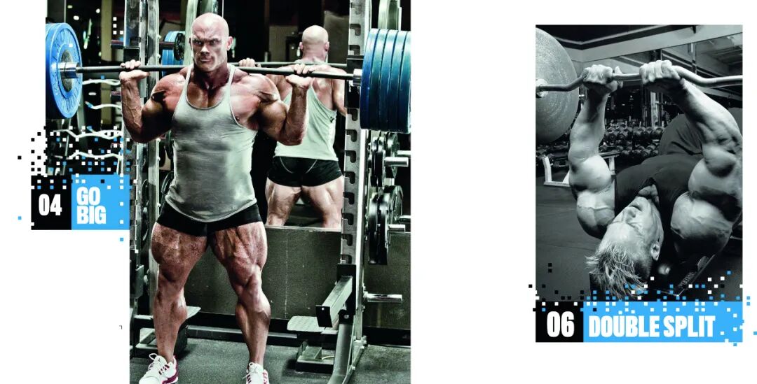 如果你的目标是增大肌肉块,总是练手臂就于事无补。你应该把重点放在大肌群上,尤其是背部和腿部肌群,因为其增肌潜力最大。把背部和腿部训练放在每周分部训练计划的最优先位置,然后,用大重量的复合训练动作,如深蹲、哈克深蹲、硬拉、直腿硬拉、俯身杠铃划船和引体向上等来轰炸这两个肌群。