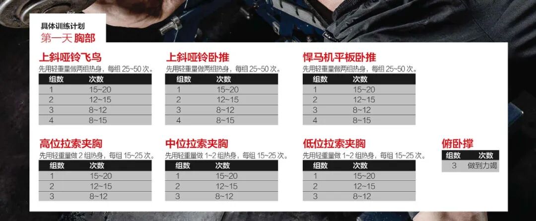 本文推荐的为期4周的高量训练计划,将是对你的肌肉的严峻考验,但回报也是很可观的,你的肌肉将变得更大块、更结实、线条更明显。