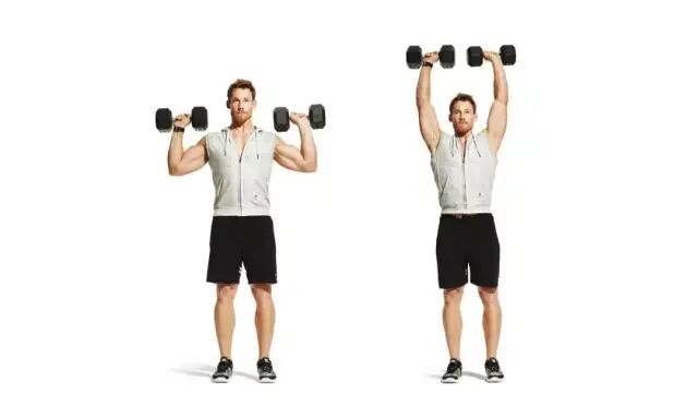 “每次你把哑铃举过头顶时,你都要把手臂收回来,以形成一个良好的后蹲姿势,这时你需要你的胸椎向外伸展一点点。”Horschig 说,“我们的胸椎天生就很僵硬,因为它连接着我们所有的肋骨,这些肋骨包裹着我们胸腔里的重要器官。”