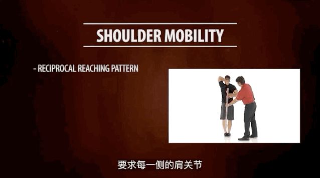 01、肩部灵活性测试:肩部灵活性测试可评估肩关节的灵活性和活动性。在FMS的肩部灵活性测试中,用手长作为和人体相关的测试标准,双手进行反向的伸手动作,观察同时移动双手是否会影响任何一侧手的运动。