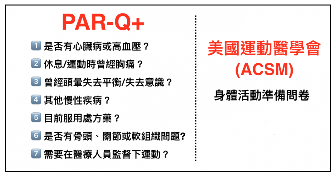 许多培训师还将使用体育锻炼准备状况调查表(PAR-Q),其中包括七个或更多与你的总体健康相关的问题,在这些问题中,你可能会被问到你服用的药物类型,是否有任何问题,例如头晕、疼痛或任何可能损害你运动能力的医疗状况。