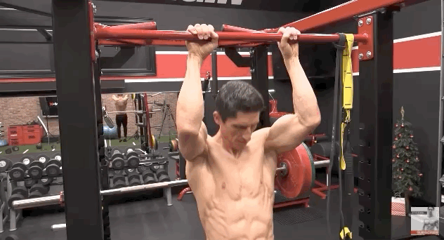 但是,把你的下巴抬高到杆子上方是一个很差的标准,并且通过拉升动作造成不必要的动作,把胸部推到杆子是思考引体向上的最好方式。