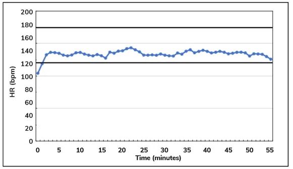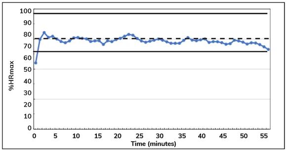 ▲ 表2显示的是锻炼中每分钟的相对%HRmax数据