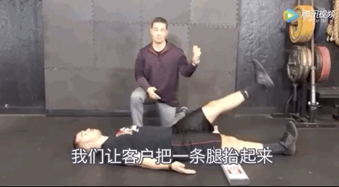 我们将在核心收紧的情况下,进行一个单腿下降和上抬的练习。同时,不要忘记身体另一侧还有一个潜在的伸展成分,所以这时我们可以通过臀桥引入伸展训练,并告诉我们的客户髋伸展相与腰椎伸展之间的差异。