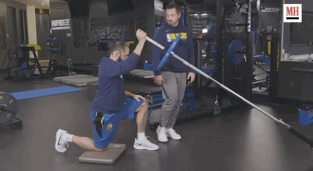 “除了力量和一般的躯干控制,这个练习对篮球来说是很好的,因为我们正在努力提高在运动中很常见的过顶姿势的力量。”