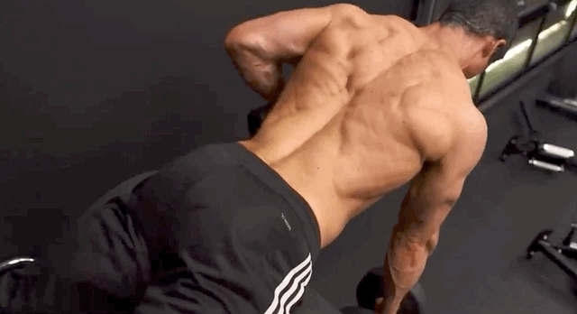 这个动作更具挑战性,最好把它放在你常规练习动作之外,这个动作本质上是一种哑铃练习的变式动作,仍然利用臀大肌来支持下背部,然后使用上半身来进行举重运动,额外增加的重量意味着需要更多肌肉,比如背阔肌。