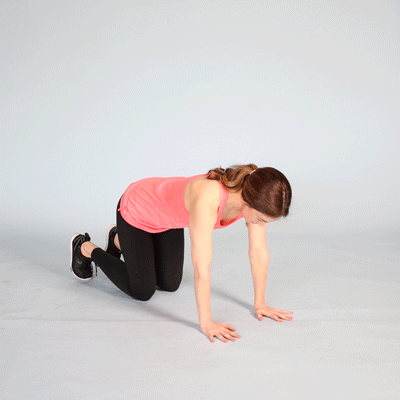 从俯卧撑的姿势开始,如果这太困难,你可以用膝盖和手肘支撑自己;